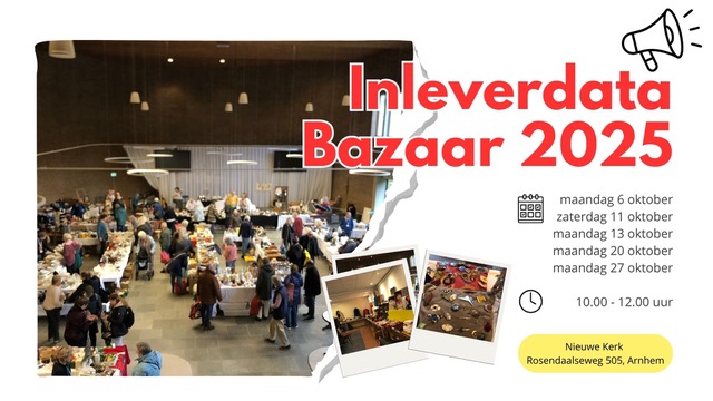Zaterdag 8 november is de jaarlijkse Bazaar in de Nieuwe kerk, Rosendaalseweg 505